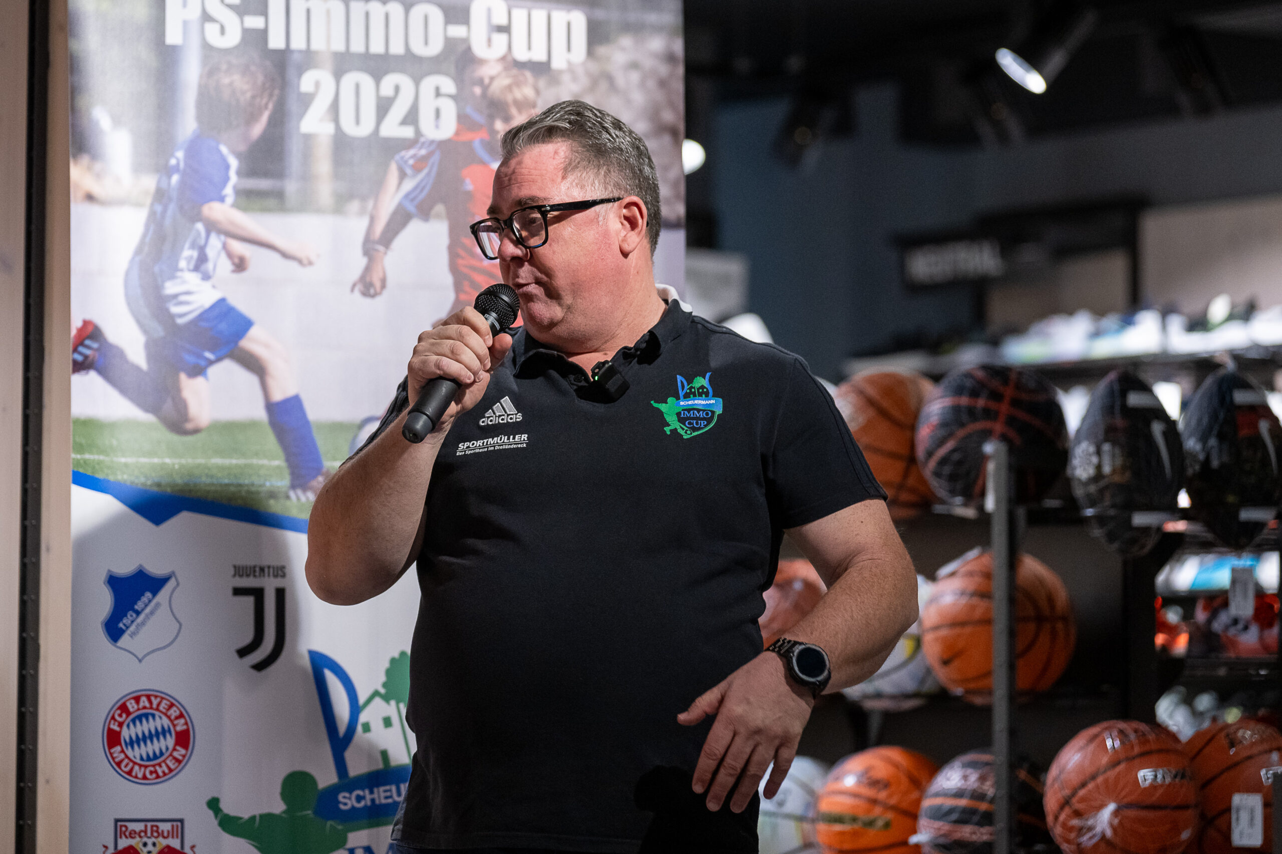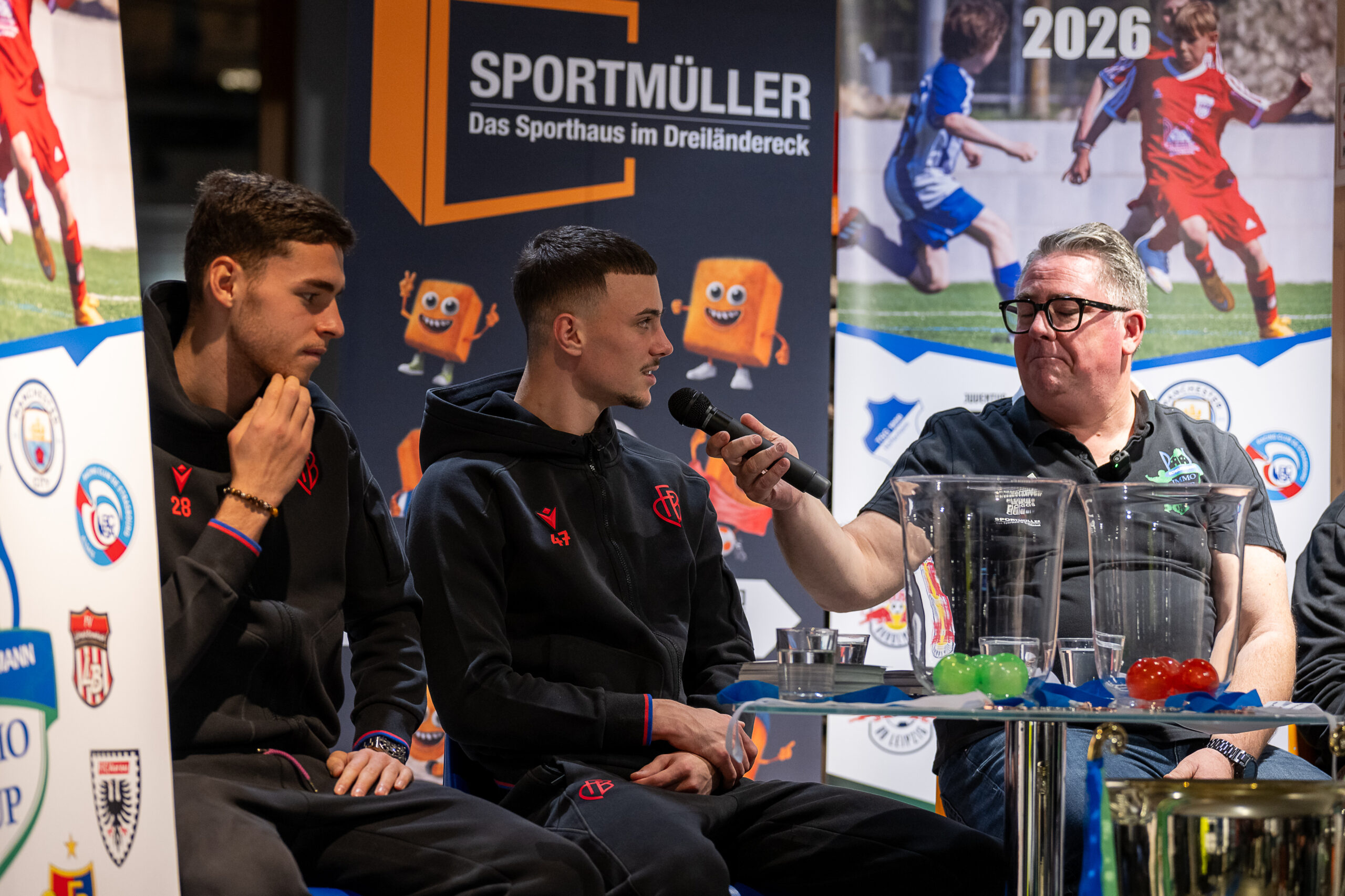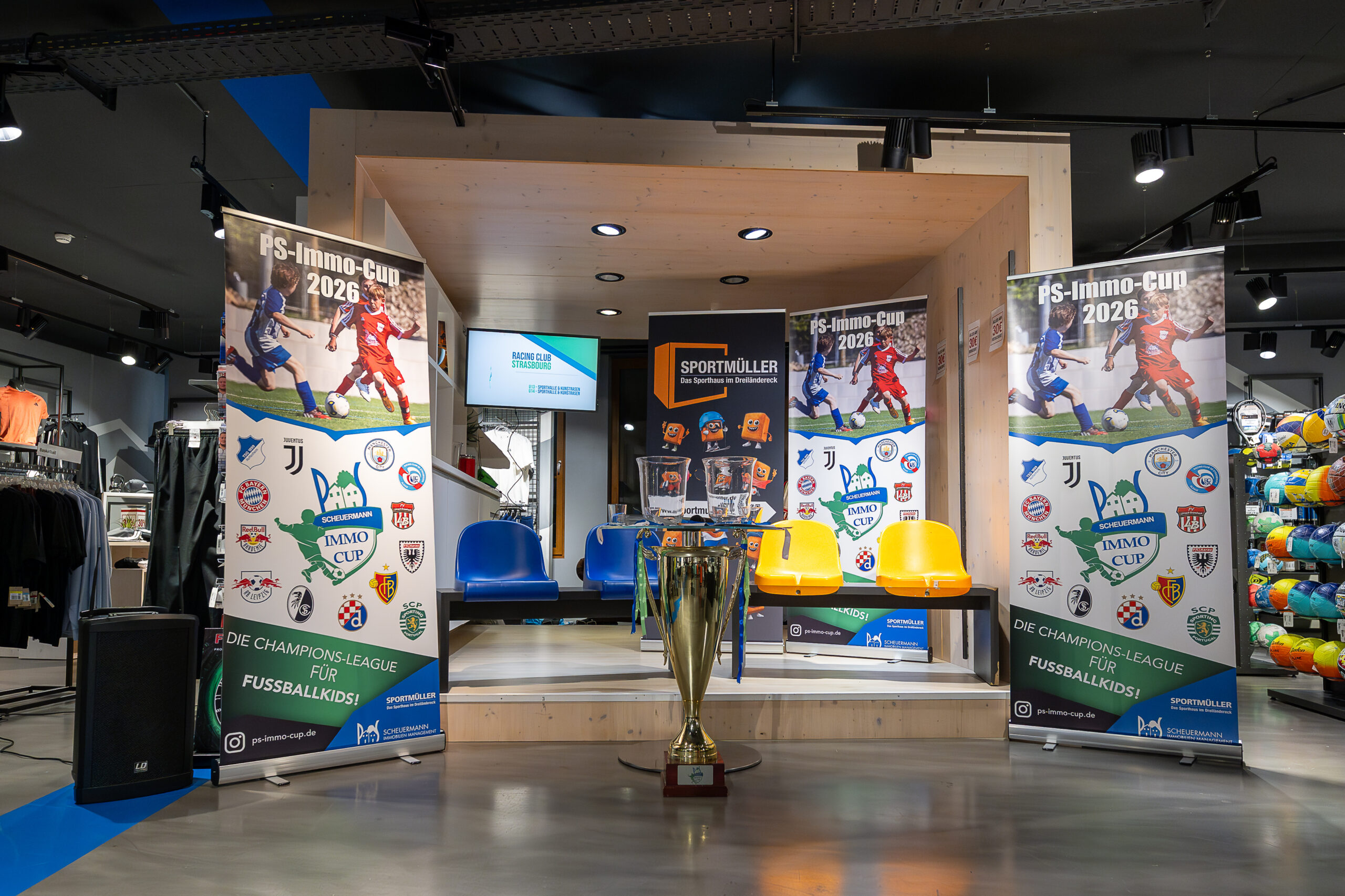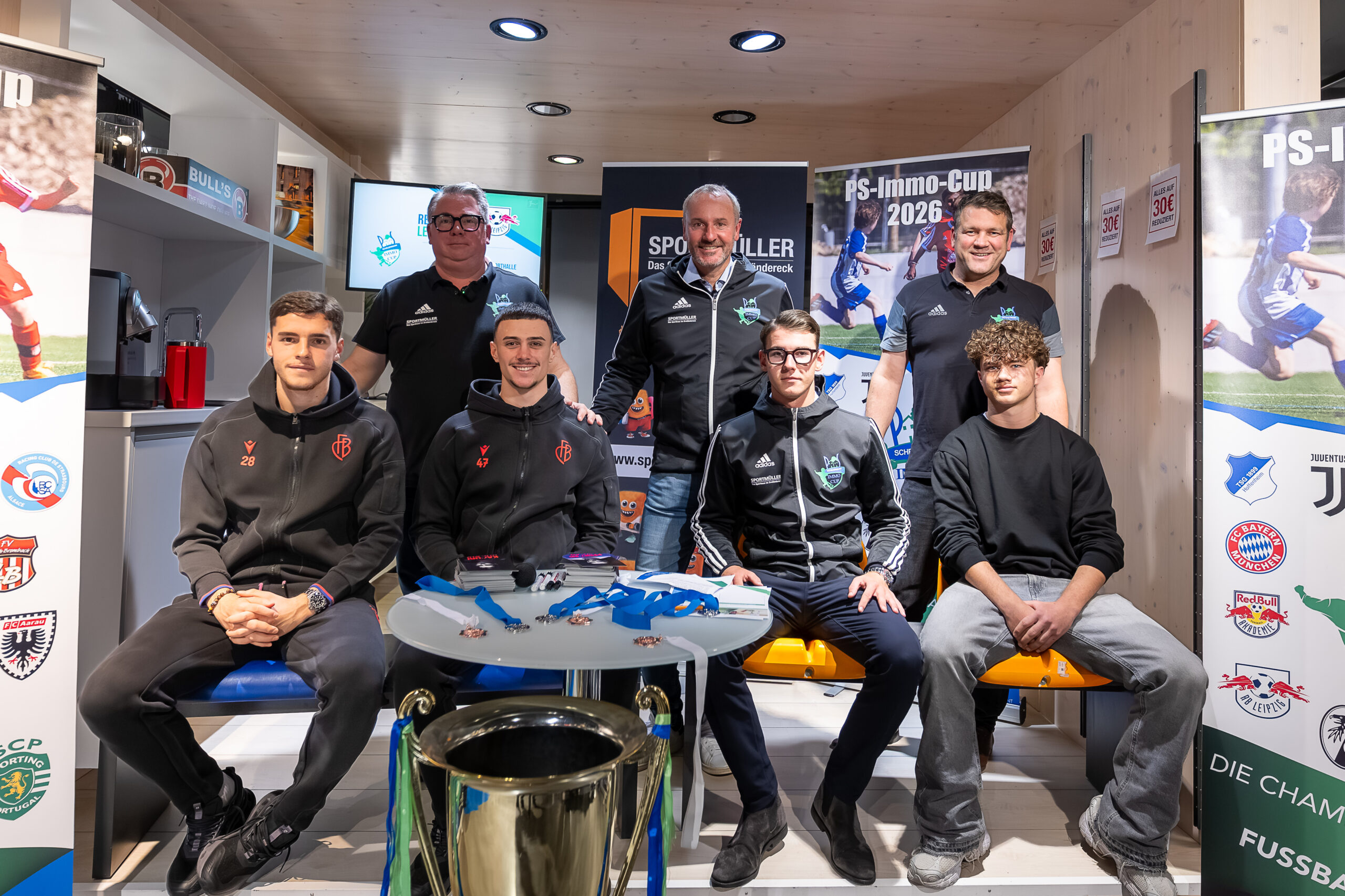 Auslosung PS-Immo-Cup bei Sportmüller durch Fußballprofi Felix Gebhardt. Beim Hallen- und Feldturnier am 21.01. und 22.01.2023 mit dabei so namhafte Clubs wie FC Bayern München, Bayer 04 Leverkusen, TSG Hoffenheim, SC Freiburg, Eintracht Frankfurt und RB Leipzig aus Deutschland. Aus der Schweiz der FC Basel 1893 und FC Aarau. Aus Frankreich Racing Club Straßburg. Aus England Manchester City, aus Italien Juventus Turin, aus Holland Ajax Amsterdam und aus Österreich RB Salzburg. Somit nehmen Teams aus 8 europäischen Ländern am PS-Immo-Cup des FVLB teil. Mit dabei auch die Jungs vom SV Weil und FV Lörrach-Brombach.