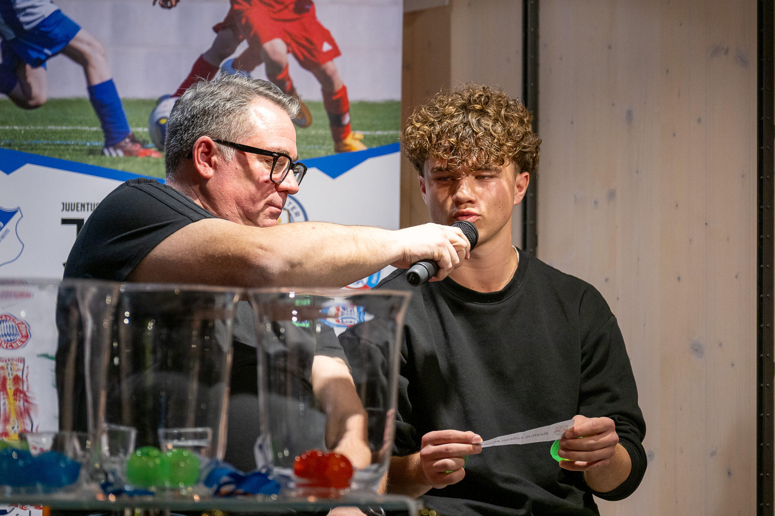 Bei der Gruppenauslosung unter der Moderation von Floyd Kleinhans zog Felix Gebhardt für die FVLB-Teams attraktive Gegner. So trifft beim Hallenturnier die U 14 des FVLB in ihrer Gruppe auf den SC Freiburg, RB Leipzig, Bayer 04 Leverkusen, Juventus Turin und Manchester City.