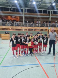 In der Hallenbezirksmeisterschaft Hochrhein konnte die U13-schwarz in der Vorrunde, Zwischenrunde, dem Halbfinale und der Endrunde überzeugen und wurde verdient Hallenbezirksmeister am 22.02.2026 in Waldshut. Am Samstag machte man sich auf den Weg nach Pfullendorf. Nach einer Stärkung im Vereinsheim des SC Pfullendorf und der moralischen Unterstützung der U17 beim 1:0 Sieg in Pfullendorf, startete das Team gut in das Turnier. Die ersten vier Spiele gegen den FV Bad Rotenfels (3:1), FC 08 Radolfzell (2:1), FC Fischerbach (2:0) und den FC 08 Villingen (2:0) konnten überzeugend gewonnen werden. Durch die Punkteteilungen der anderen Teams, war den FVLB-Talenten bereits vor dem abschließenden Spiel gegen den Bundesliganachwuchs des SC Freiburg (0:5) der Titel nicht mehr zu nehmen. Erstmals konnten die FVLB-Talente den Titel des südbadischen Futsalmeisters gewinnen und vertreten gemeinsam mit dem SC Freiburg den Verband beim Landesfinale am 14.03.2026 in Straubenhardt (Baden). Hier trifft der FVLB auf zwei Vertreter aus Baden sowie vier Vertreter aus Württemberg (wir berichten noch).