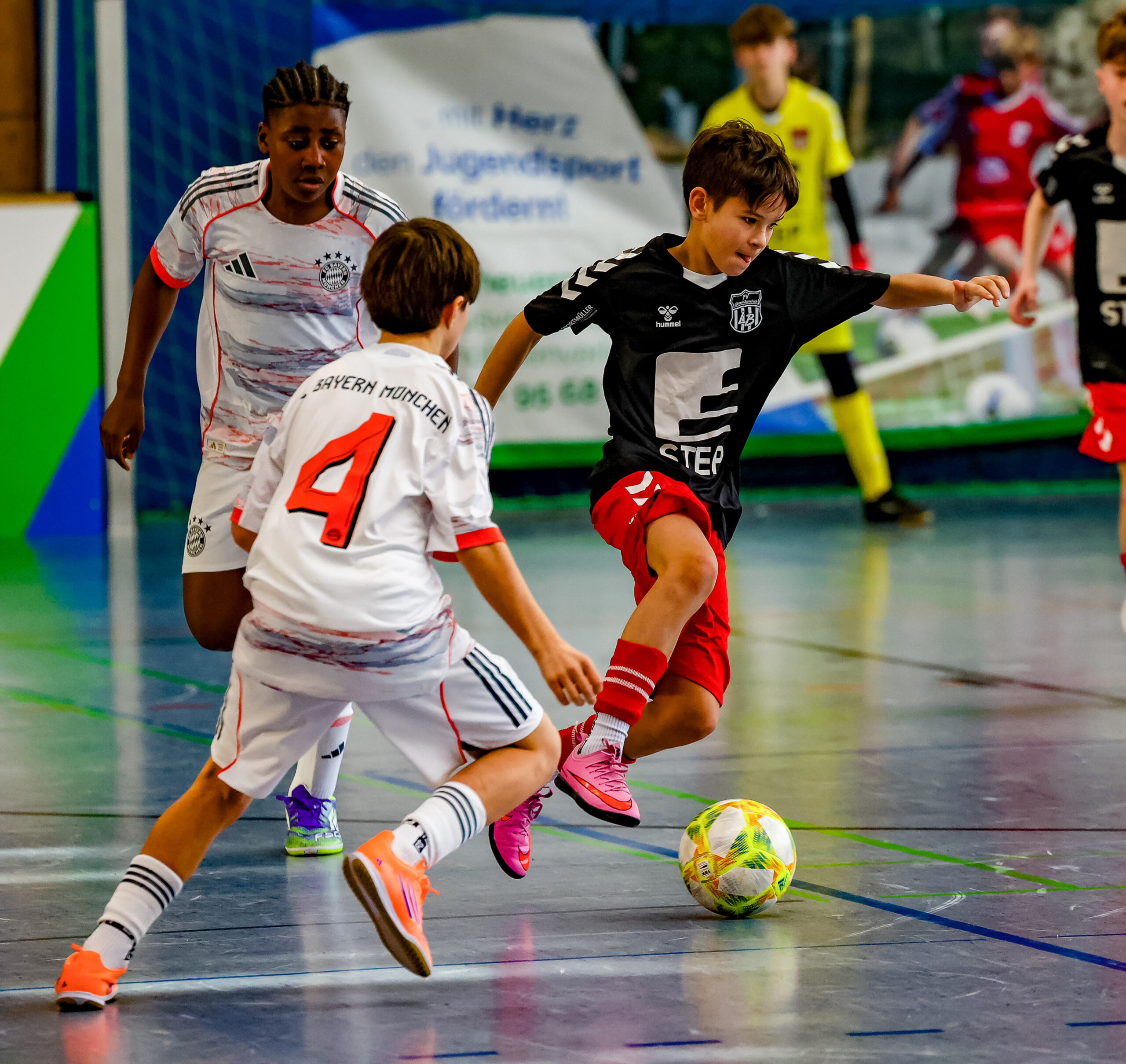 Die U13 spielt in der Vorrunde in der Halle gegen den FC Bayern München, Bayer 04 Leverkusen, Manchester City, den Racing Club Straßburg und den SC Freiburg.